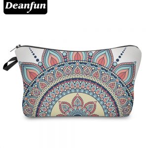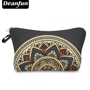 Cosmetic Bag with Zipper 3D Printed Floral Eastern Mandala