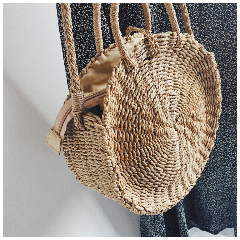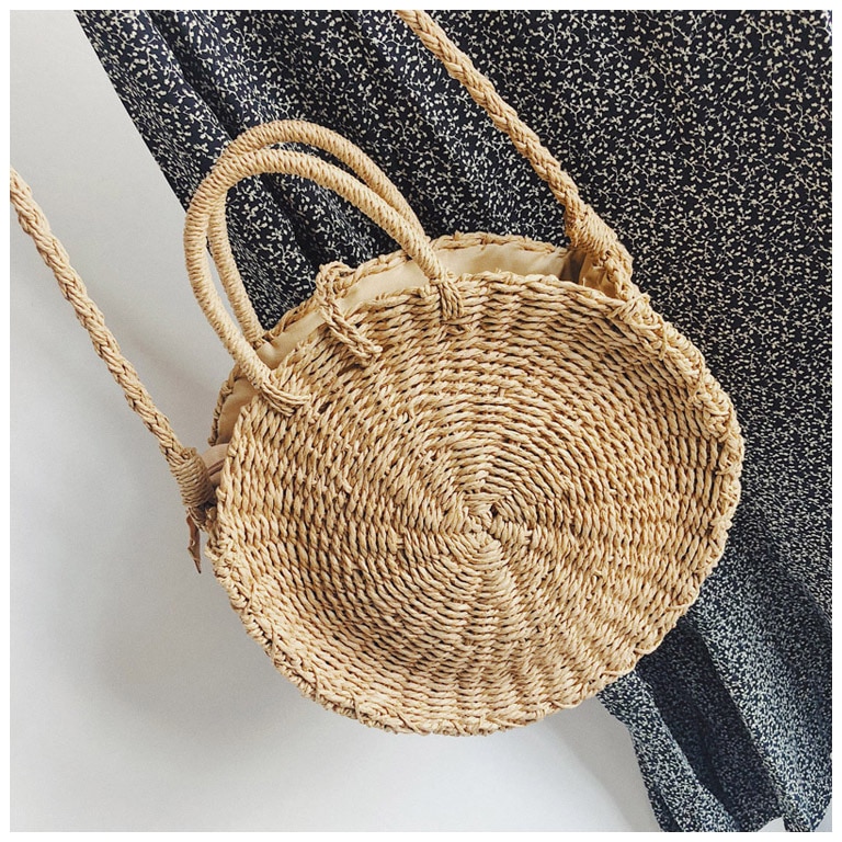 2018 Moroccan Palm Basket Hand Woven Round Handbag