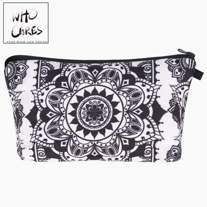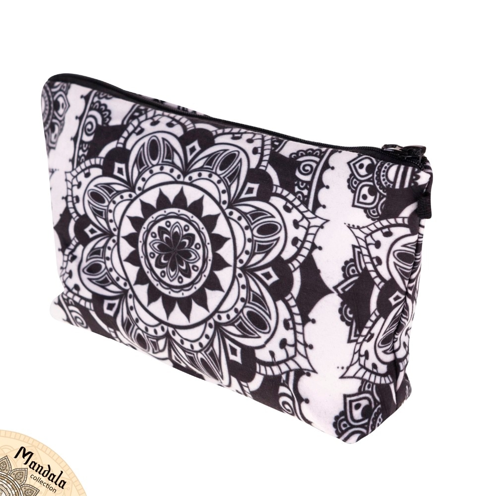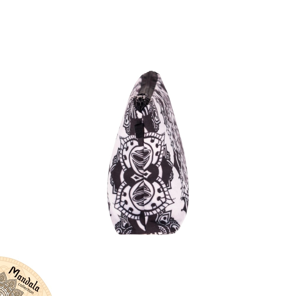 Contemplate ancient Eastern symbols in black and white when you use this portable makeup bag.