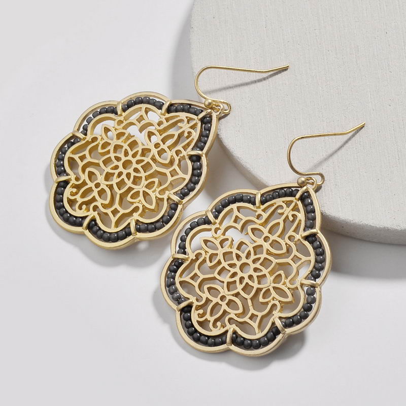 Enhance your earring collection with this fine golden tracery of a classic Moroccan design. Simple, yet sophisticated enough to wear for a range of occasions. In a choice of colors.