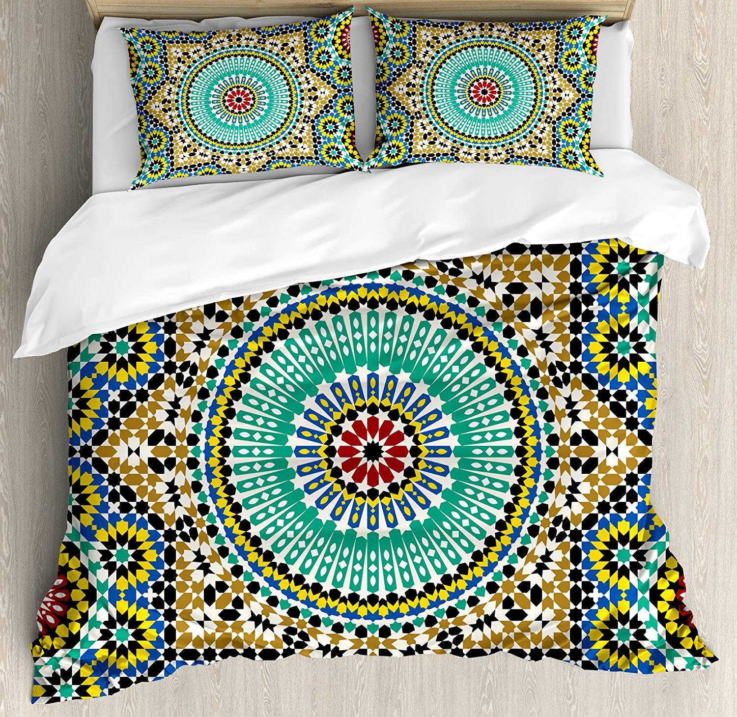 Wow! Exciting Moroccan architectural designs make a bold artistic statement on the duvet and pillowcases of this bed set. It’s absolutely thrilling!